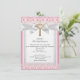 First Holy Communion 1st Girls Cross Pink Lace Invitation