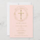 First Holy Communion Blush Pink Gold Cross Floral Invitation