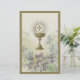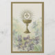 This is a beautiful traditional Catholic First Holy Communion religious floral image of a gold chalice and host with a gold border.