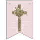 First Holy Communion Cross with Dove and Heart Elegant Gold Look Cross on Soft Pink Background Party Bunting Banner