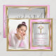 First Holy Communion Girls Pink Pearl Photo Invitation