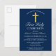 First Holy Communion Gold Cross Blue Invitation Postcard