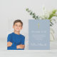 First Holy Communion Gold Cross Dusty Blue Photo Thank You Card
