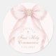 First Holy Communion Gold Cross Pink Bow Classic Round Sticker