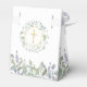 Elegant floral first holy communion favour box featuring a pretty laurel garland and gold cross with personalised name and special date set in chic gold typography. You can also personalise with your own thank you message under the lid. A perfect way to say thank you to your guests! Designed by Thisisnotme©