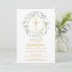 A decorative greenery garland and gold cross sit above your special first holy communion invitation information on this elegant design.