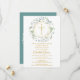 A decorative greenery garland and gold cross sit above your special first holy communion save the date information on this elegant design.