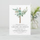 Sage Green Floral Girl's Eucalyptus and Cross Botanical Greenery Watercolor Religious First (1st) Holy Communion Invitations.