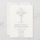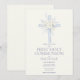 First Holy Communion Invite, Blue Floral Cross Invitation