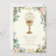 Featuring a beautiful custom designed First Holy Communion invitation with the Chalice, Holy Eucharist and pink and blue florals. Included is the prayer to the Holy Sacrament.
