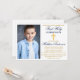 Modern Elegant Blue and Gold First Holy Communion Invitation with Cross and Photo.