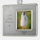 Capture the moment with our silver-coloured photo ornament featuring First Holy Communion text and a cross. Personalise it with a name and year for a special keepsake that can be displayed during the holidays or gifted as a cherished memento. This ornament beautifully commemorates this important milestone, adding a touch of religious significance to your holiday decor and creating lasting memories for years to come.