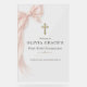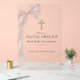 Elegant First Holy Communion welcome acrylic sign featuring a soft pink bow design for a graceful, feminine celebration. Perfect for welcoming guests to your daughter special sacrament with a modern, polished display. Ideal for church receptions, party entrances, and photo backdrops. Editable text. Premium acrylic finish.