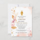 First holy communion pink watercolor splash invitation