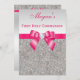 First Holy Communion Silver Jewels, Hot pink Bow Invitation