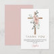 Daughter's Dusty Rose Floral and Eucalyptus - Cross Botanical Sage Green Greenery Watercolor Religious First (1st) Holy Communion Thank You Cards.