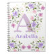 Design features Monogram & Name with Flowers either side in a water colour pastel style. Initial is the letter A. Gift for Arabella in the form of a personal notebook.