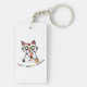 First Makeup (Yanchan) Vertical Keychain" "Yanchan, the whimsical yuru-chara cat, tries makeup for the first time. Green eyeshadow adorns his lashes, yellow under-eye shadow beneath his eyes. Gold highlights grace his nose and inner eye corners, with additional gold under-eye highlights. Finally, vibrant pink blush completes the look. Carry Yanchan’s cute and unique makeup style with you on this vertical keychain.