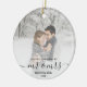 Commemorate the first Christmas of your marriage with this beautiful modern keepsake ornament. The black text reads "Our first Christmas as Mr & Mrs," with the words "Mr & Mrs" in elegant handwriting script with flourishes before and after. Replace the sample image with your favorite photo, and add your last name and the year. A white gradient filter helps make the text pop.