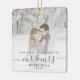 First Married Christmas Custom Photo Grey Script Ceramic Ornament