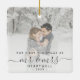 Commemorate the first Christmas of your marriage with this beautiful modern keepsake ornament. The charcoal grey text reads "Our first Christmas as Mr & Mrs," with the words "Mr & Mrs" in elegant handwriting script with flourishes before and after. Replace the sample image with your favourite photo, and add your last name and the year. A white gradient filter helps make the text pop.