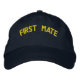 First mate, yacht crew text in yellow. Customise the style and size of font and choose your thread colour from a wide range. Visit the CUSTOMTHREADZ STOREfor a great selection of ready made designs, for boating and sailing crew members.