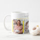 Personalised Coffee Mug for a new Mum on Mother's Day (editable to any occasion). The photo template is set up ready for you to add 4 of your favourite photos and you can also edit the message, occasion, names and the year as you wish. The design has elegant handwritten script and modern typography with a colour palette of yellow and grey. Please browse my store for more photo gifts and mother's day gifts.
