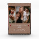Personalise a unique keepsake for a new mum celebrating her first Mother's Day with this mocha brown three photo collage photo block. Photo block design features three photo placements in panel form with modern typography and elegant script and two red hearts. Perfect photo keepsake for mum's celebrating their first Mother's Day.