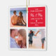Photo collage newlywed 2021 christmas ornament featuring a chic white background that can be changed to any colour, 3 photos of you and your partner, the words "our first christmas mr & mrs", a cute heart, your names, and the year. On the reverse is another 3 pictures for you to personalise.