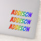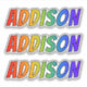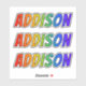 This multicolored, exciting, and vibrant sticker design features the common first name or given name "ADDISON", with the letters of the name featuring a colourful rainbow spectrum inspired gradient colouring pattern. It might be a fun gift to give to somebody named Addison. [~Z0000361]