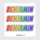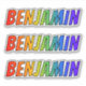 This multicolored, vibrant, and exciting sticker design features the common first name or given name "BENJAMIN", with the letters of the name having a colourful rainbow spectrum like gradient colouring pattern. It might be a fun gift to give to somebody who is named Benjamin. [~Z0000361]