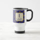 This monogram mug is a great way to add a colourful touch to your commute. An elegant gold star pattern appears against a blue background on both sides of this mug. The letter "I" is featured in a square along with your name. The letter and your name can quickly and easily be personalised.