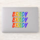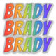 This vibrant, exciting, and fun sticker design features the common first name or given name "BRADY", with the letters of the name having a colourful rainbow spectrum like gradient colouring pattern. It might be a fun present to give to somebody whose given name is Brady. [~Z0000361]