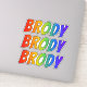This multicolored, vibrant, and exciting sticker design features the common first name or given name "BRODY", with the letters of the name having a colourful rainbow spectrum inspired gradient colouring pattern. It might be a fun present to give to somebody whose first name is Brody. [~Z0000361]