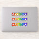 This vibrant, exciting, and fun sticker design features the common first name or given name "CASSANDRA", with the letters of the name having a colourful rainbow spectrum inspired gradient colouring pattern. It might be a fun gift to give to somebody whose first name is Cassandra. [~Z0000361]