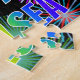 This lively and fun birthday-themed jigsaw puzzle design features the message "HAPPY BIRTHDAY, CHELSEA" having a colourful rainbow spectrum inspired gradient pattern, and an exciting bursting celebratory fireworks inspired background pattern. A vibrant puzzle like this might be used to send a birthday greeting message to somebody named Chelsea. [~Z0000465]