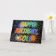 This vibrant, multicolored and fun birthday greeting card design features the message "HAPPY BIRTHDAY," and the common first name "COLE" with the letters having a colourful rainbow spectrum like gradient colouring pattern. The background of the front also features a colourful pattern inspired by the appearance of bursting celebratory fireworks. The inside features a custom greeting message, or could perhaps be cleared and left blank if a message is to be written by hand instead. A birthday greeting card like this could be fun to give to somebody named Cole on their birthday. [~Z0000350]