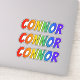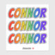 This fun, multicolored, and exciting sticker design features the common first name or given name "CONNOR", with the letters of the name having a colourful rainbow spectrum inspired gradient colouring pattern. It might be a fun present to give to somebody whose given name is Connor. [~Z0000361]