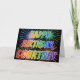 This fun, vibrant, multicolored birthday greeting card design features the message "HAPPY BIRTHDAY," and the common first name "COURTNEY" with the letters having a colourful rainbow spectrum like gradient colouring pattern. The background of the front also features a colourful bursting fireworks inspired pattern. The inside features a custom greeting message, or could perhaps be cleared and left blank if a message is to be written by hand instead. A birthday greeting card like this could be a fun way to send a customisable birthday greeting message to somebody named Courtney. [~Z0000350]