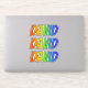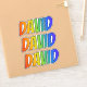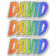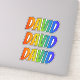This vibrant, multicolored, and fun sticker design features the common first name or given name "DAVID", with the letters of the name having a colourful rainbow spectrum like gradient colouring pattern. It might be a fun present to give to somebody whose first name is David. [~Z0000361]