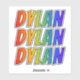 This exciting, vibrant, and fun sticker design features the common first name or given name "DYLAN", with the letters of the name having a colourful rainbow spectrum inspired gradient colouring pattern. It might be a fun gift to give to somebody whose first name is Dylan. [~Z0000361]