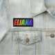 This fun, vibrant, multicolored name tag design features the common first name "ELIANA", with the letters of the name having a colourful rainbow spectrum like gradient colouring pattern, on a black coloured background. A nametag like this might be worn by an employee, a volunteer, or a staff member whose first name is Eliana, to help identify the wearer to customers or other people. [~Z0000344]