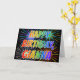 This multicolored and fun birthday greeting card design features the message "HAPPY BIRTHDAY," and the common first name "GIANNA" with the letters having a colorful rainbow spectrum like gradient coloring pattern. The background of the front also features a colorful pattern inspired by the appearance of bursting celebratory fireworks. The inside features a personalized greeting message, or could perhaps be cleared and left blank if a message is to be written by hand instead. This might be a fun way to acknowledge the birthday of somebody named Gianna. [~Z0000350]