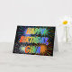 This multicolored and fun birthday greeting card design features the message "HAPPY BIRTHDAY," and the common first name "GINA" with the letters having a colourful rainbow spectrum like gradient colouring pattern. The background of the front also features a colourful pattern inspired by the appearance of bursting celebratory fireworks. The inside features a customisable greeting message, or could perhaps be cleared and left blank if a message is to be written by hand instead. This might be a fun way to acknowledge the birthday of somebody named Gina. [~Z0000350]