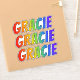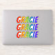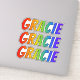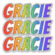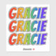 This vibrant, multicolored, and exciting sticker design features the common first name or given name "GRACIE", with the letters of the name having a colourful rainbow spectrum inspired gradient colouring pattern. It might be a fun present to give to somebody whose given name is Gracie. [~Z0000361]
