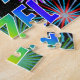 This vibrant and exciting birthday-themed jigsaw puzzle design features the message "HAPPY BIRTHDAY, HAZEL" having a colourful rainbow spectrum inspired gradient pattern, and a fun bursting celebratory fireworks inspired background pattern. A vibrant puzzle like this might be a fun way to acknowledge the birthday of somebody named Hazel. [~Z0000465]