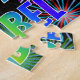 This vibrant, exciting, birthday-themed jigsaw puzzle design has the message "HAPPY BIRTHDAY, ISABEL" having a colorful rainbow spectrum inspired gradient pattern, and a lively bursting celebratory fireworks inspired background pattern. A vibrant puzzle like this might be used to send a birthday greeting message to somebody named Isabel. [~Z0000465]