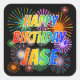 First Name "JASE", Fun "HAPPY BIRTHDAY" Square Sticker