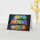 This vibrant, multicolored and fun birthday greeting card design features the message "HAPPY BIRTHDAY," and the common first name "JODI" with the letters having a colorful rainbow spectrum like gradient coloring pattern. The background of the front also features a colorful pattern inspired by the appearance of bursting celebratory fireworks. The inside features a personalized greeting message, or could perhaps be cleared and left blank if a message is to be written by hand instead. A greeting card like this might be a fun way to send a personalized birthday message to somebody named Jodi. [~Z0000350]