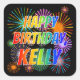 First Name "KELLY", Fun "HAPPY BIRTHDAY" Square Sticker